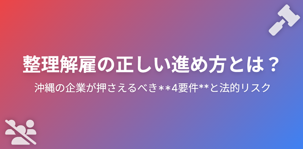 沖縄県内でも、観光業や小売業を中心に、円安による仕入れコスト増などで経営環境が厳しくなり、人員削減を検討せざるを得ない企業が増えています。しかし、整理解雇は単に「経営が苦しいから」という理由だけでは認められません。