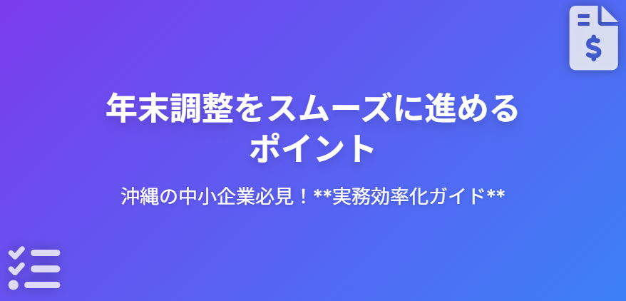 毎年11月になると「年末調整の書類がなかなか集まらない」「従業員への説明に時間がかかる」といったお悩みはありませんか?特に沖縄の観光・サービス業では、繁忙期と重なることも多く、効率的な年末調整の実施が課題となっています。本記事では、就業規則の整備を通じて年末調整をスムーズに進めるための具体的なポイントをご紹介します。